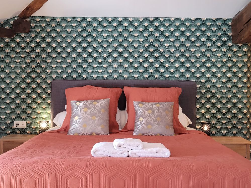 Deze ruime kamer heeft een kingsize bed, een zitgedeelte, mooie oude houten balken en een badkamer. De twee aanwezige ramen zijn op het oosten en het zuiden gelegen. U kunt dus de hele dag van de zon genieten. De kamer biedt een prachtig uitzicht op de wijngaarden.
